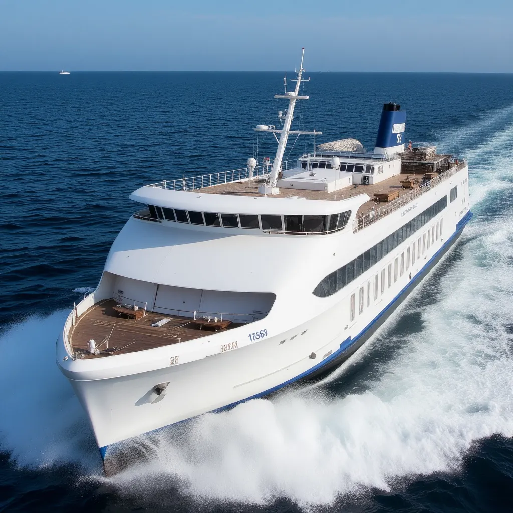 Su diseño interior es moderno, con amplias áreas acristaladas que permiten disfrutar del paisaje marítimo durante todo el trayecto. Es ideal tanto para escapadas familiares como para viajes de negocios.