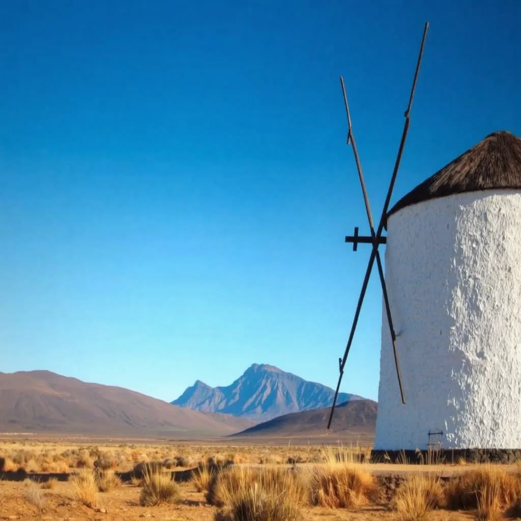 La imagen más icónica del interior de la isla son los molinos de viento, símbolos de Fuerteventura. Diseminados por pueblos como Villaverde, Tefía o Antigua, son excelentes fondos fotográficos y evocan la relación majorera con el trigo, la cebada y el gofio.