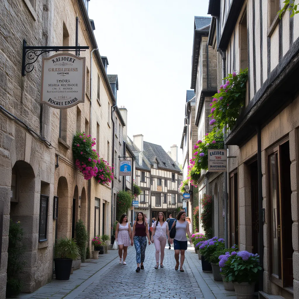 La calle está flanqueada por encantadoras casas de granito y algunas de entramado de madera, típicas de la arquitectura bretona. Históricamente, muchas de estas casas pertenecían a armadores y comerciantes ricos. Hoy, sus plantas bajas están ocupadas por tiendas de recuerdos, galerías de arte y, lo más importante, tiendas de productos locales.