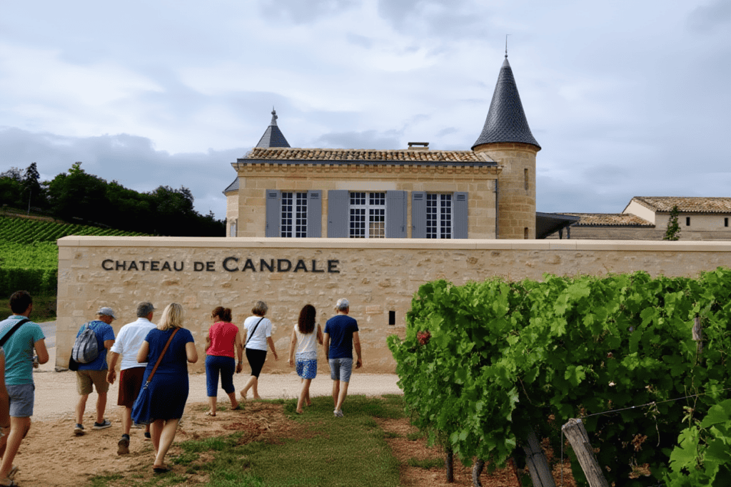 No muy lejos de Pressac se encuentra Château de Candale, una pequeña bodega familiar propiedad de Magali y Thibaut Decoster. Lo que hace especial a este lugar, además de su vino, es su hermoso restaurante gastronómico en el sitio, que permite maridar la cocina local con sus caldos mientras se disfruta del paisaje.