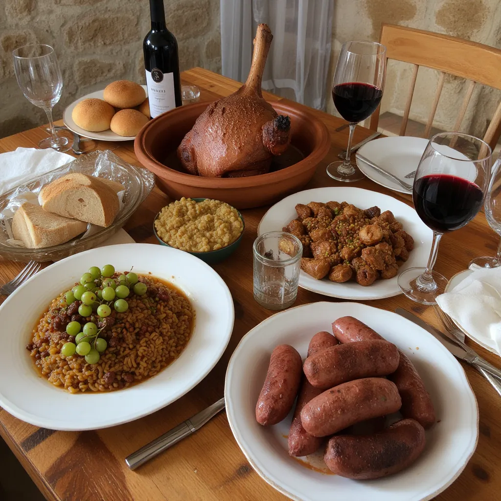 La cocina local se basa en productos de proximidad: huerta, caza menor, aceite de oliva, almendras, setas en temporada y una repostería sencilla pero sabrosa.
