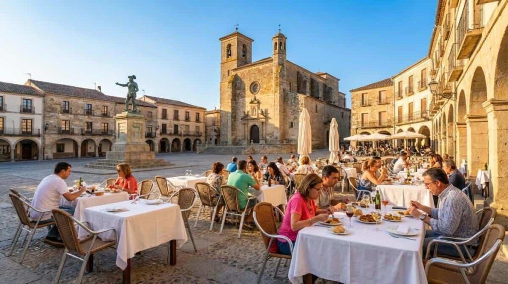 Trujillo (Cáceres) es una joya gastronómica de Extremadura. Entre calles empedradas y palacios renacentistas, se esconden restaurantes que fusionan cocina tradicional y vanguardia. Comer aquí es una experiencia profundamente ligada al territorio: corderos, embutidos ibéricos, quesos artesanos, aceite de oliva y vinos locales son protagonistas de una cocina honesta y sincera.