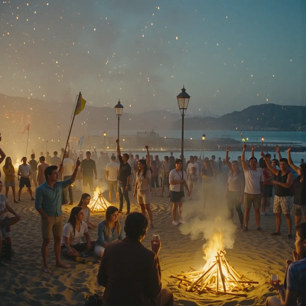 - Hogueras de San Juan (23-24 de junio): Celebración en toda la costa mediterránea (especialmente en Alicante, Valencia, Barcelona y A Coruña); playas llenas de hogueras, música, fuegos artificiales y baños nocturnos para atraer la buena suerte.