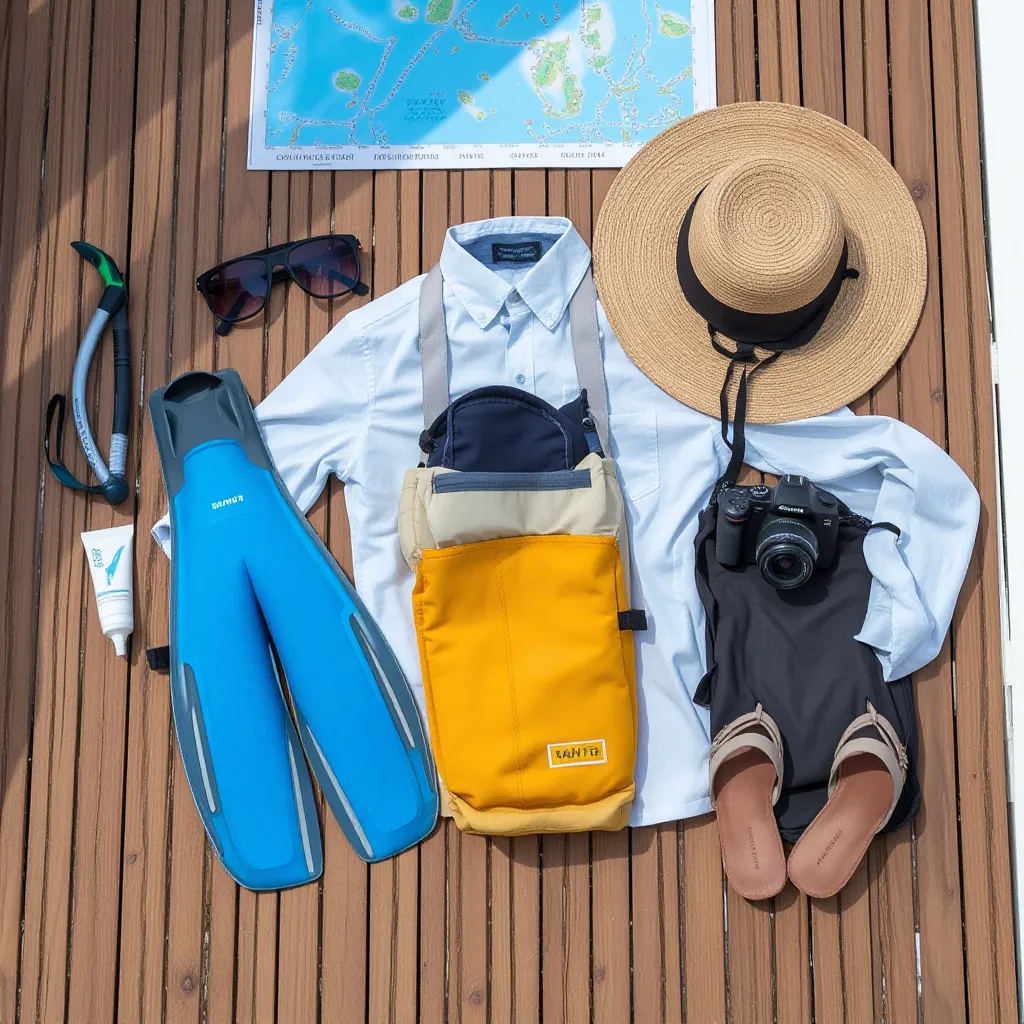 - Máscara, tubo y aletas (si quieres tu propio equipo; muchos barcos los proporcionan).