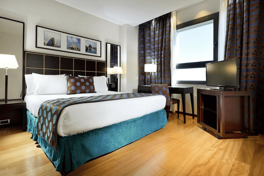 - Hotel Primus Valencia: Un clásico moderno cerca de las Artes y las Ciencias con un jardín que parece un oasis tropical.