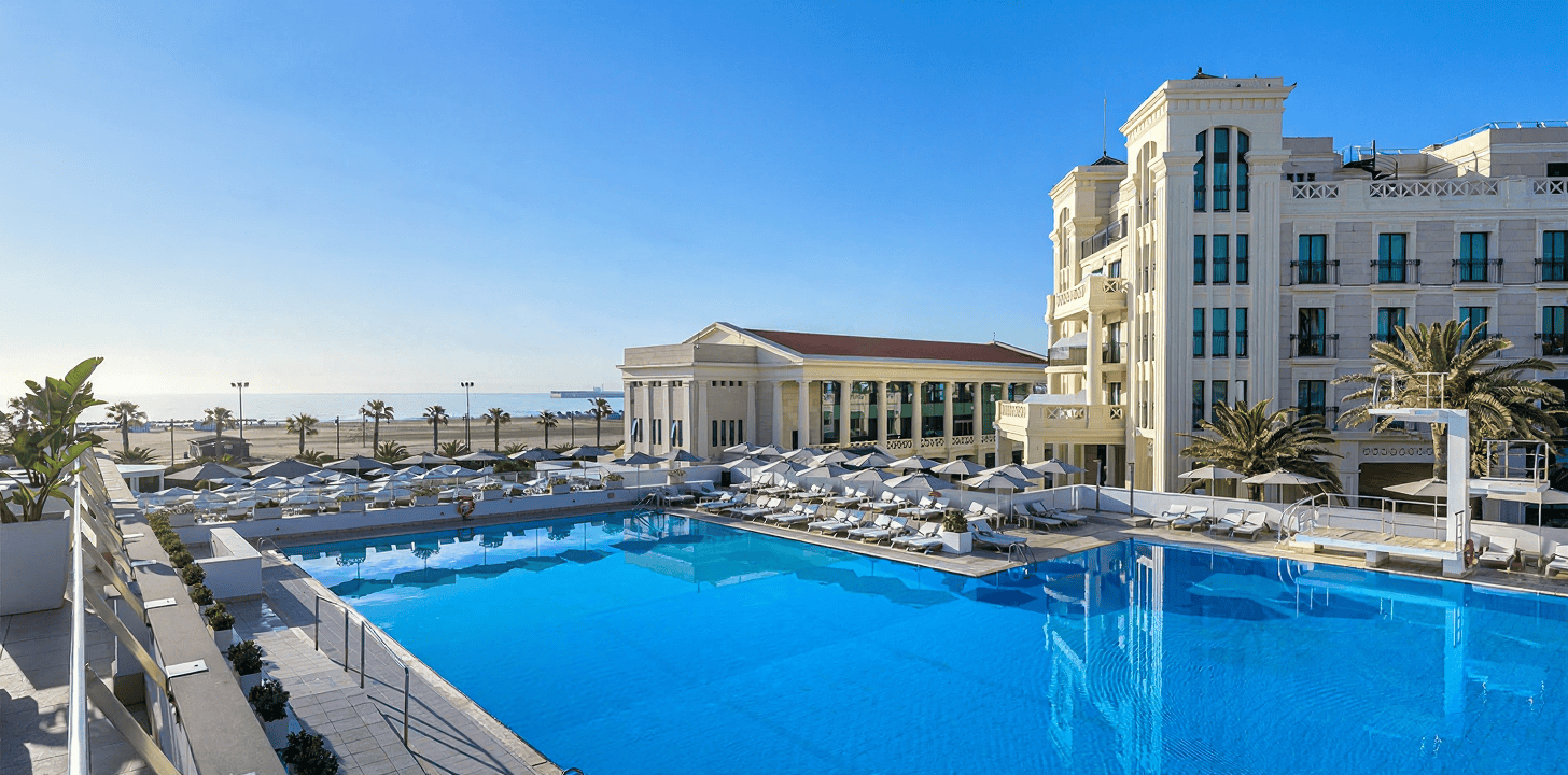Aunque no está en el centro histórico, su excelente conexión mediante metro y tranvía lo hace muy accesible. Sin embargo, lo incluimos en este top no solo por lo que es hoy, sino por la estrategia de expansión de la marca Sercotel en la ciudad, que culmina en 2026 con nuevas aperturas como el Sercotel Santa Mónica. Pero centrándonos en el Sorolla Palace, su oferta acuática es de las más completas de la ciudad.