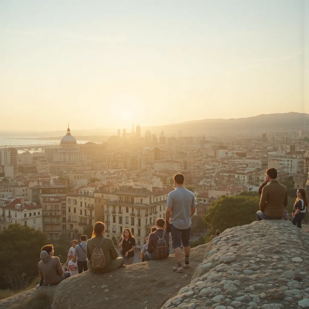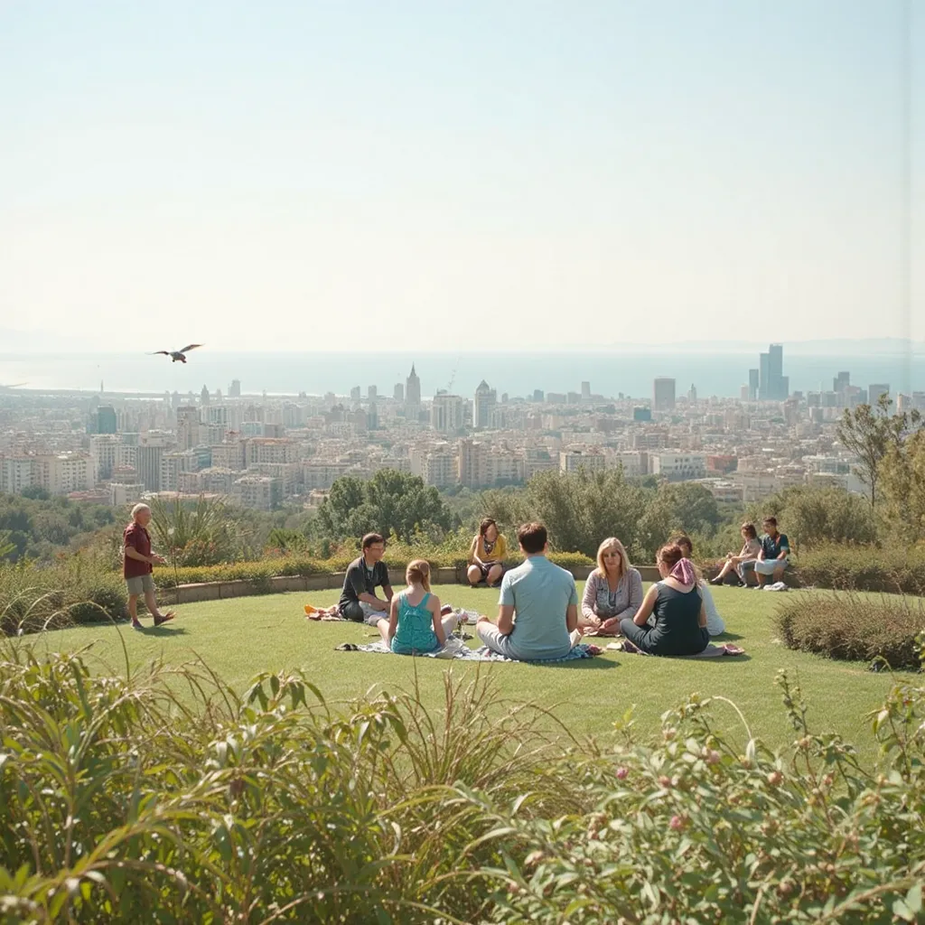 El ambiente suele estar animado al atardecer, cuando decenas de personas suben para disfrutar de un picnic, unas cervezas y la puesta de sol mágica sobre Barcelona. Aunque puede estar concurrido, la experiencia merece la pena.