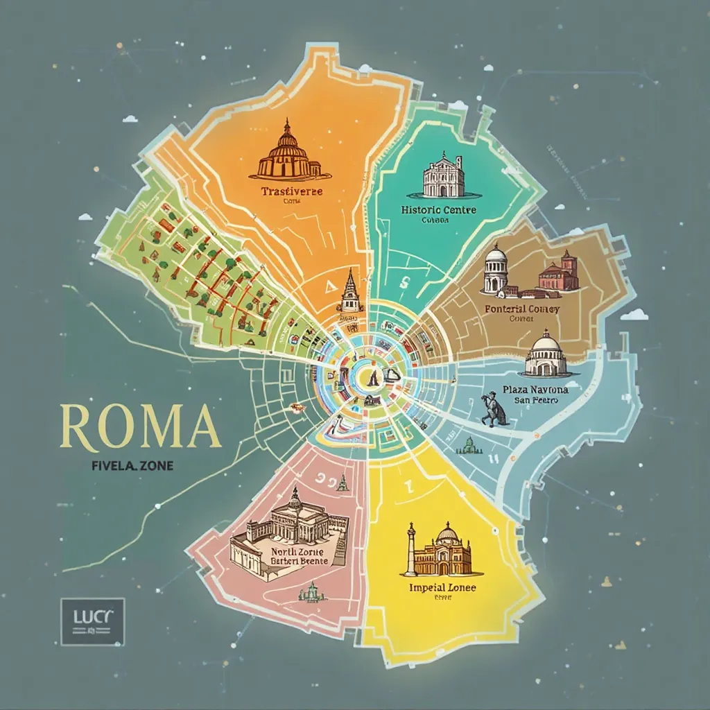 - Zona Imperial: La Roma antigua por excelencia, donde están el Coliseo, el Foro Romano, Palatino, Mercado de Trajano y alrededores.