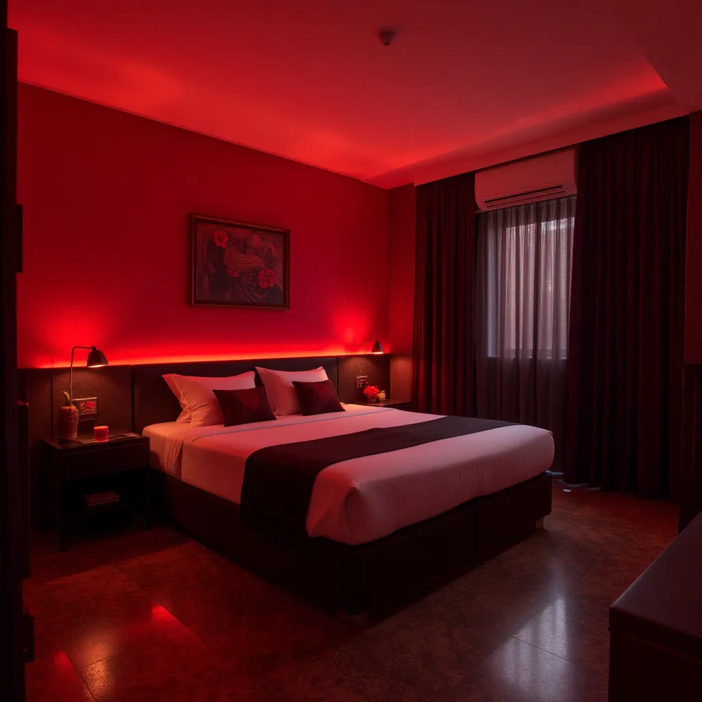 - Habitaciones con tintes rojos y negros. , de ambiente sensual.