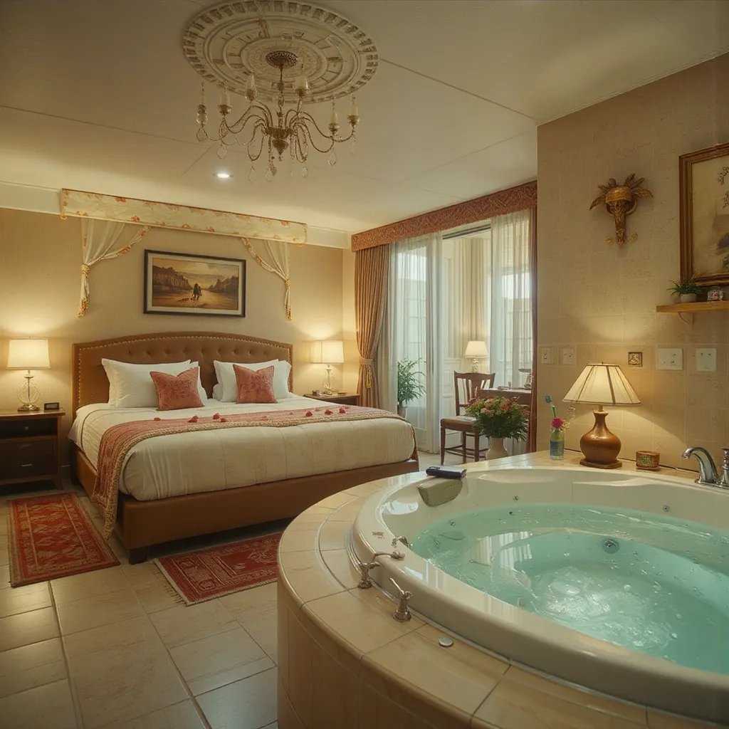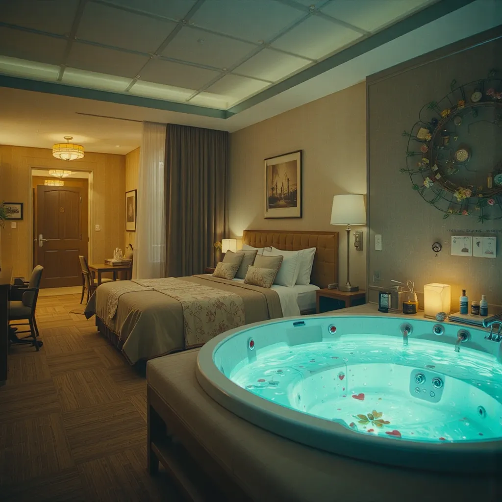 - Opciones de suites temáticas, algunas con jacuzzi privado y decoración romántica.