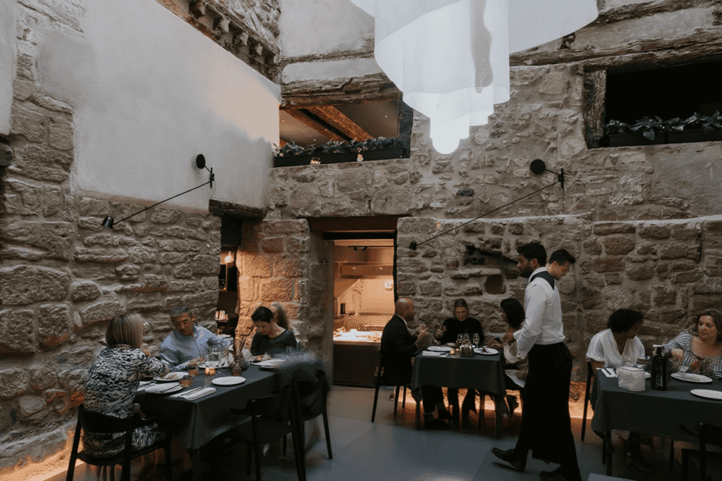 - Características: Situada en una bodega del siglo XVII, ofrece una carta que respeta los productos locales mientras incorpora presentaciones contemporáneas.