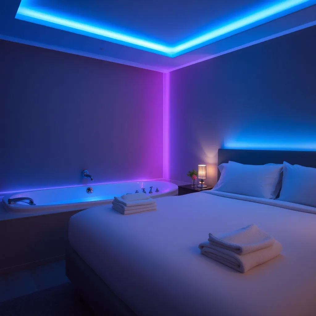 Para quienes buscan elevar la experiencia, el Motel Paraíso Mexicali ofrece suites que incluyen jacuzzi. Estas habitaciones son considerablemente más amplias y están diseñadas para la relajación total. El jacuzzi suele estar integrado en el espacio principal o en un área de baño abierta, permitiendo disfrutar del hidromasaje mientras ve la televisión o conversa.