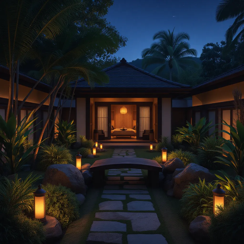 - Jardín japonés y decoración inspirada en la cultura nipona.