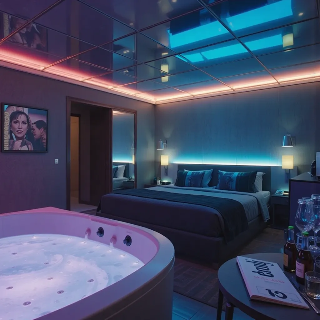 - Servicios: Habitaciones temáticas premium, camas king size, tinas de hidromasaje