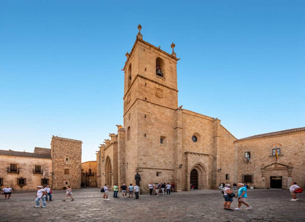 A pocos pasos del Arco, la Concatedral de Santa María destaca por su transición del románico al gótico y su impresionante retablo plateresco. El campanario, accesible mediante una escalera de caracol, ofrece una de las mejores miradas de la ciudad. En su interior también se conserva la famosa imagen del Cristo Negro, protagonista de una de las procesiones más emotivas de la Semana Santa cacereña.