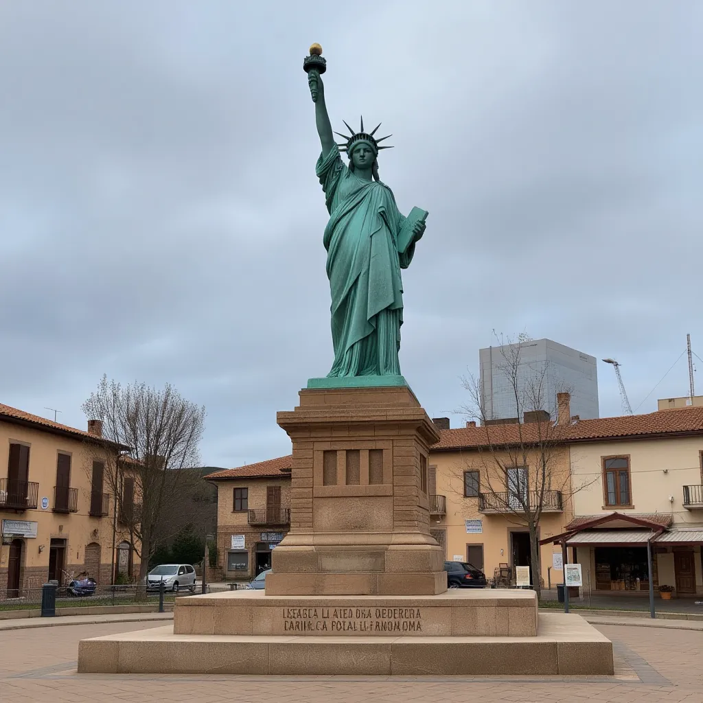 - La figura femenina con antorcha levantada, evocando la original de Nueva York, pero adaptada a escala y al contexto local.