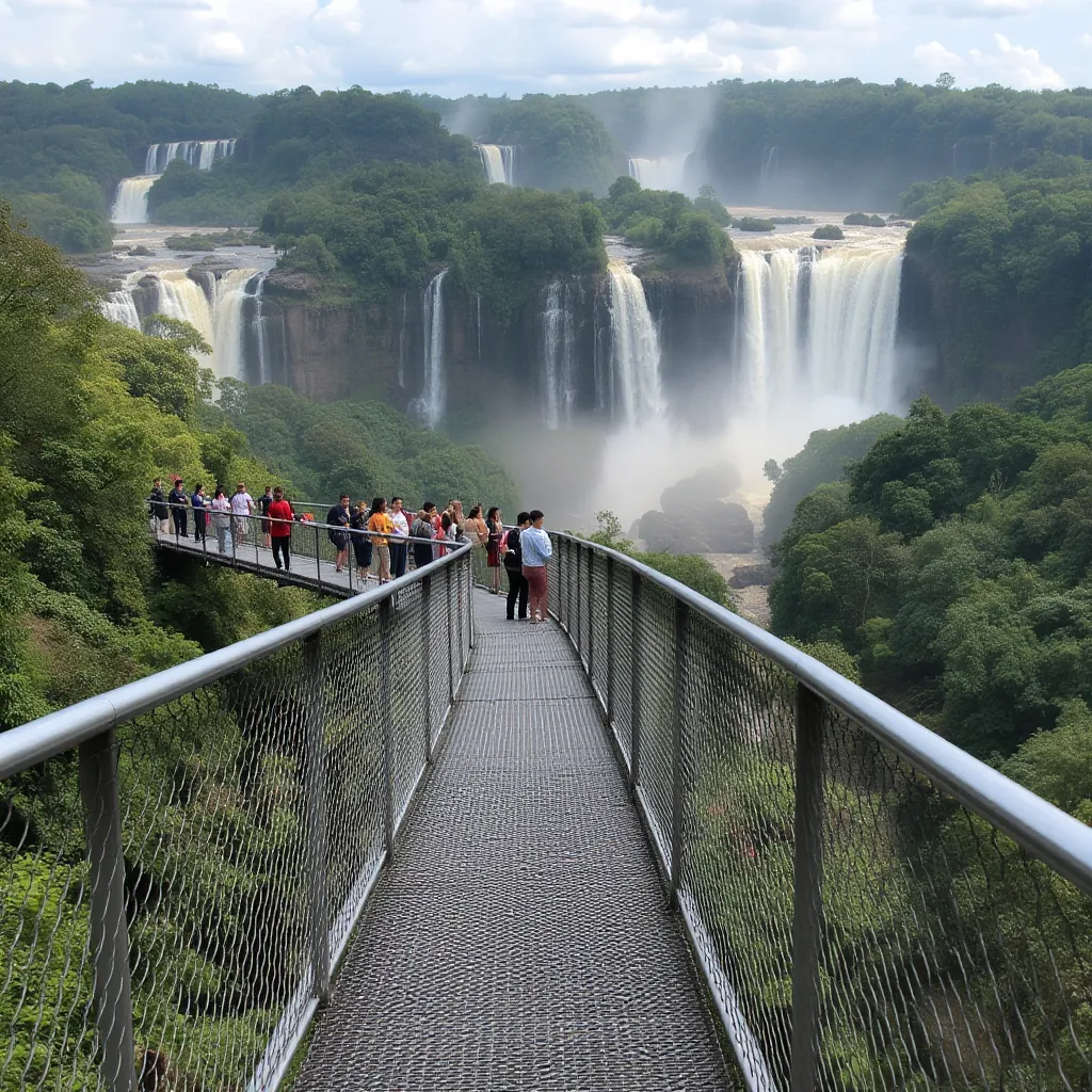 A medida que se avanza, los miradores ofrecen ángulos cada vez más espectaculares hasta llegar al punto máximo: la pasarela que se adentra frente a la Garganta del Diablo, donde el rugido del agua se transforma en una sinfonía natural. Al final del recorrido, un ascensor panorámico asciende hasta una terraza con una vista completa del parque, un cierre perfecto para los amantes de la fotografía.