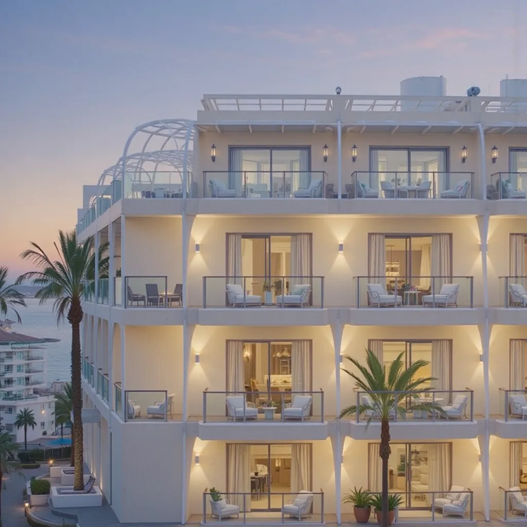 - Suites Exclusivas: Habitaciones amplias y elegantemente decoradas, muchas de ellas con terrazas privadas y vistas panorámicas al mar Mediterráneo. El diseño busca reflejar la luz y los colores del entorno.